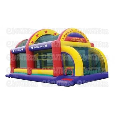 Our Sports Complex is a winner for all you sports enthusiasts. Hit the game winning bucket in Basketball, Score a goal in Soccer or make a great spike in Volleyball. Attach the Inflatable Pedestal put on the headgear and you have a Jousting Arena. This inflatable comes with a volleyball net, joust pedestal, 2 joust poles, a basketball, soccer ball, and 2 headgear.